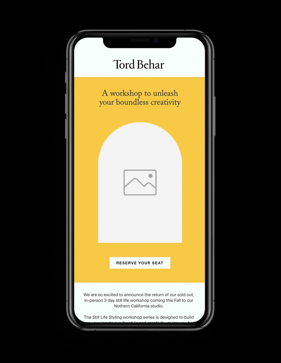 Layout blocks are Flodesk’s proprietary technology that allow you to use specialty fonts and create custom graphics right within the email builder—without needing third-party software like Canva or Photoshop. Once you send your email, a layout block will render as an image element.