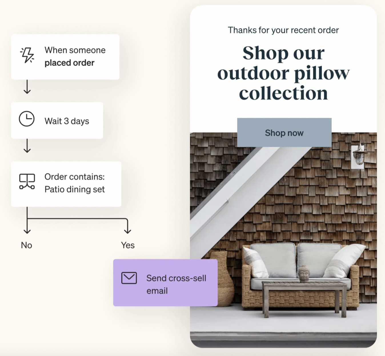 • Pre-built, behavior-triggered automations like cross-selling, back-in-stock, and browse abandonment