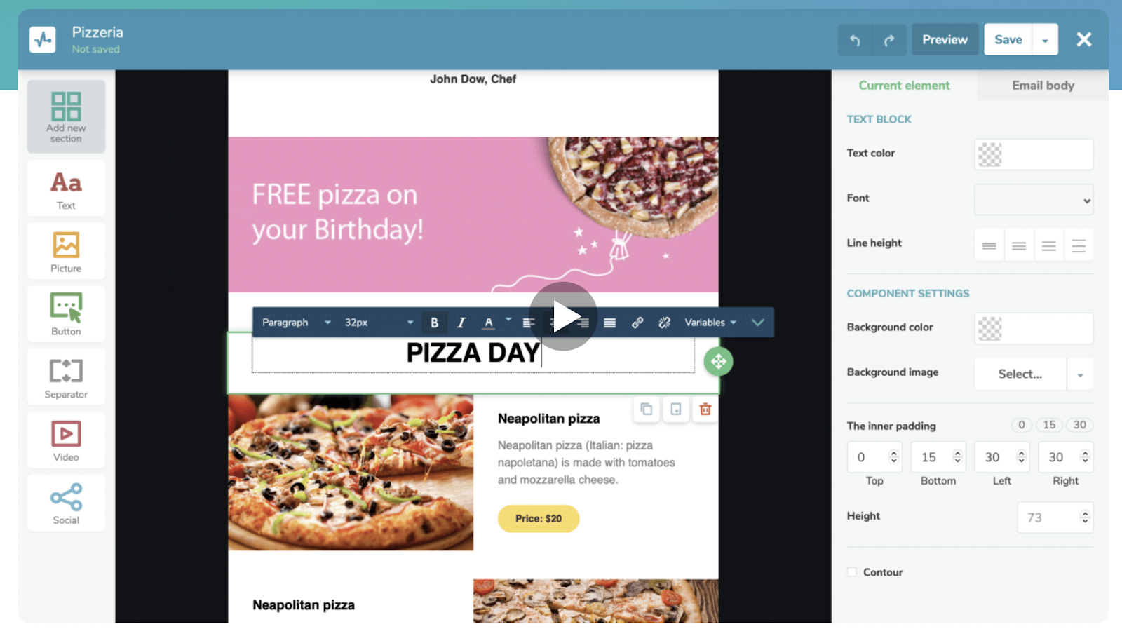 • The ability to create stunning graphics within the Flodesk platform, helping you follow email design best practices without the need for third-party design tools like Canva