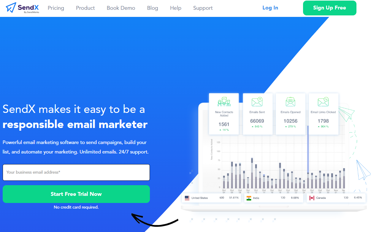 SendX does not offer a free plan, but you can get started with a 14-day free trial to get a feeling for whether this email marketing provider is right for you. You’ll be able to send up to 100 emails with this trial.