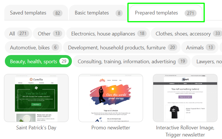 Stripo has templates for almost every industry, making it a perfect recommendation for any business that wants to make the best use of pre-made templates. You can also order custom templates from Stripo if you can’t find exactly what you’re looking for.