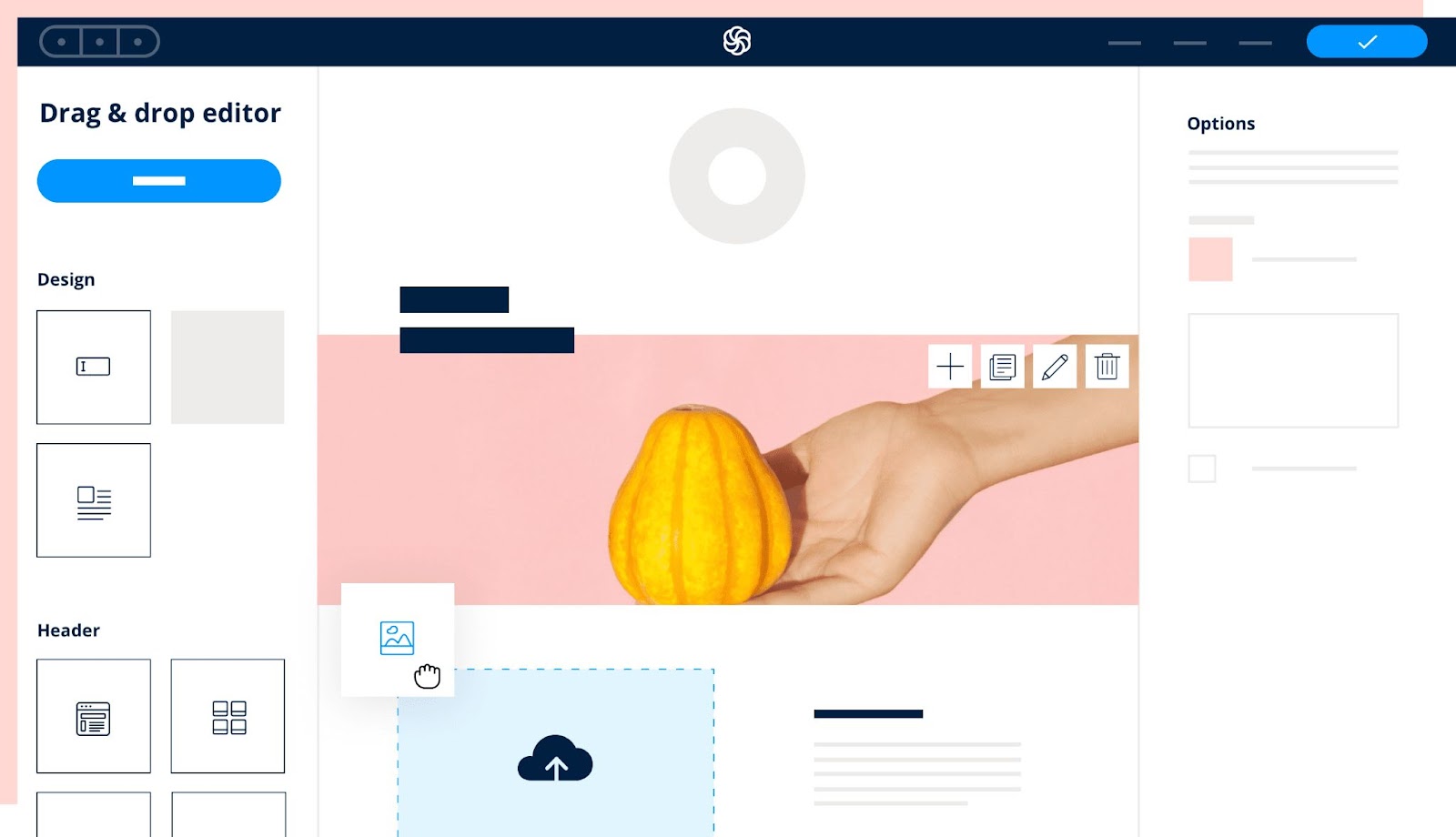 - Drag-and-drop editor: Drag and drop blocks into your design.