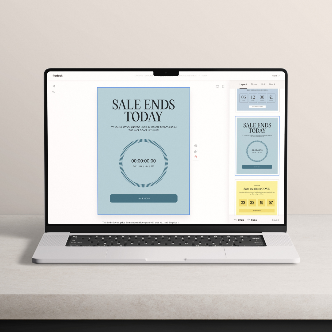 Third-party countdown timers can cost hundreds of dollars a year. Now, you get it free with your Flodesk membership. And instead of spending hours customizing a timer or editing code, you can create a fully customized timer in mere minutes.