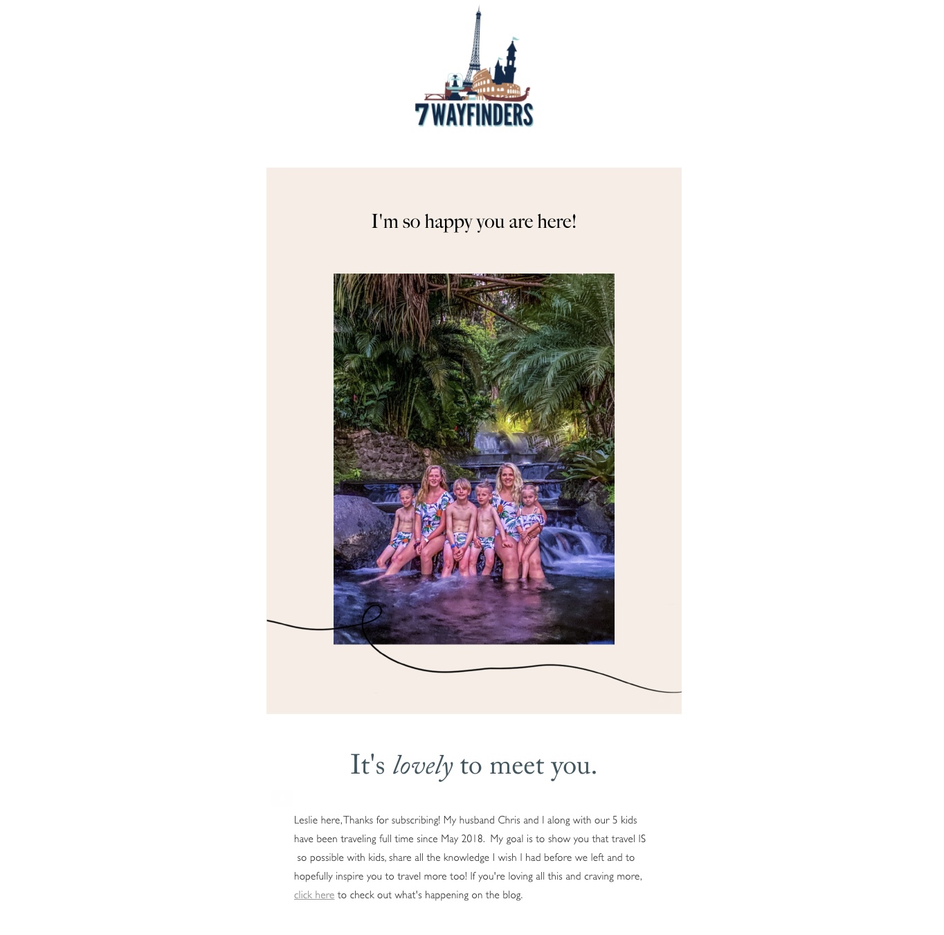 In this newsletter, Flodesk member Leslie from 7Wayfinders shows her target audience, parents with young children, that it’s possible to travel as a family.