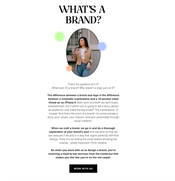 There are several ways to build credibility, but we love Alyssa Nguyen Design’s approach. Alyssa Nguyen is a design expert, so she uses her welcome email as a space where she can show her subscribers that she knows her stuff regarding design. Right off the bat, she explains what a brand is in very simple terms that anyone could understand.