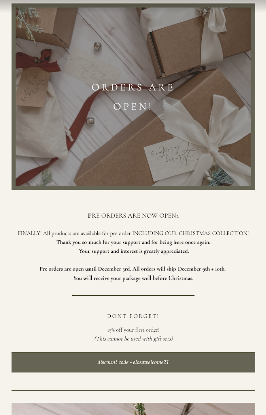 2. Elosa’s pre-orders now open email