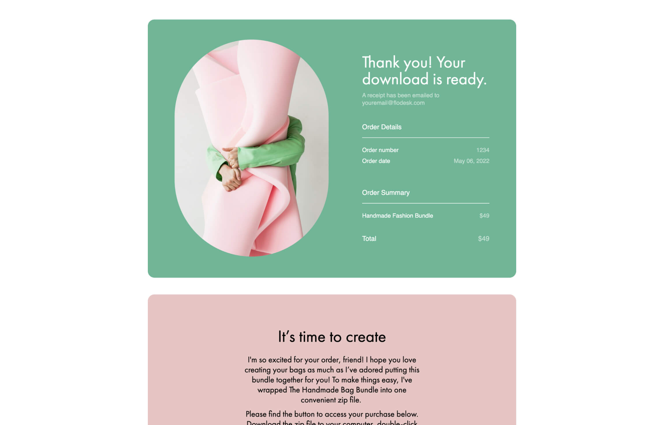 We packaged everything you need to start selling online into Flodesk Checkout, with beautiful sales pages, online payments, and instant product delivery—all in one place. To get started, just follow the three steps below.