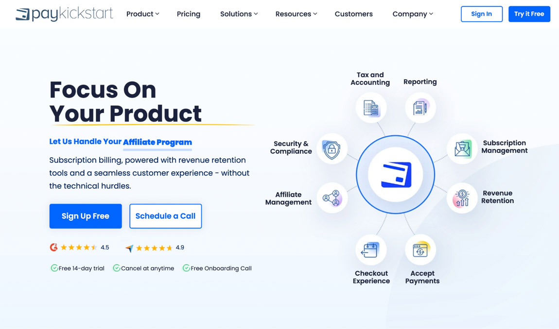 • Affiliate management features like custom commissions, quick payouts, and public or invite-only settings
