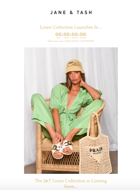 Before launching one of their recent collections, Sigfus sent out a last-minute teaser email before the official launch. This is a great way to remind subscribers of a sale or product launch right before it drops, adding to the suspense and prompting them to browse what you’ve got to offer.