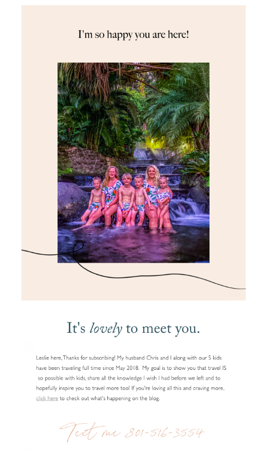 In this thank you email from 7 Wayfinders, Leslie greets new subscribers with a warm welcome. Here’s why this email works: