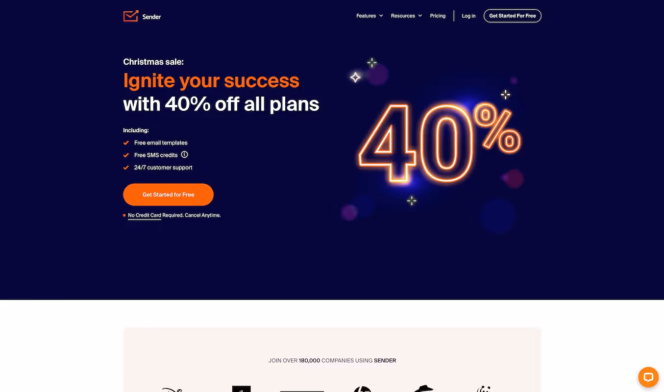 Sender provides email and SMS marketing tools, including features like email builders, marketing automation, audience segmentation, and detailed reporting. They offer a free plan for up to 2,500 subscribers and 15,000 emails per month, along with free templates, popups, forms, and more.
