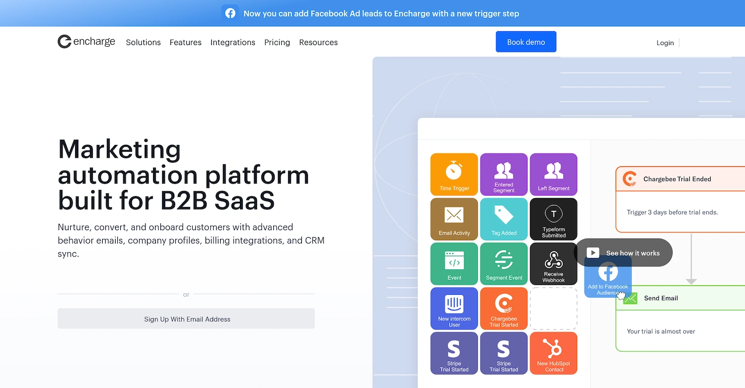 Extensive Integrations: Encharge integrates with over 50 tools, including HubSpot, Slack, and Stripe.