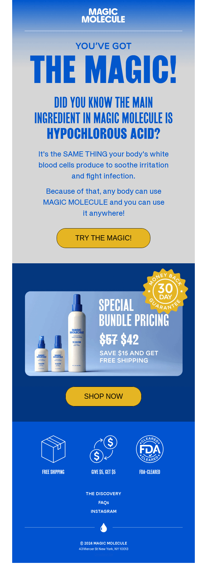 Magic Molecule's email, titled "You've Got It In You," features a clean and engaging design that effectively captures the reader's attention. The straightforward layout and concise content make it easy for users to understand the key message quickly, empowering them to take immediate action based on the information presented.